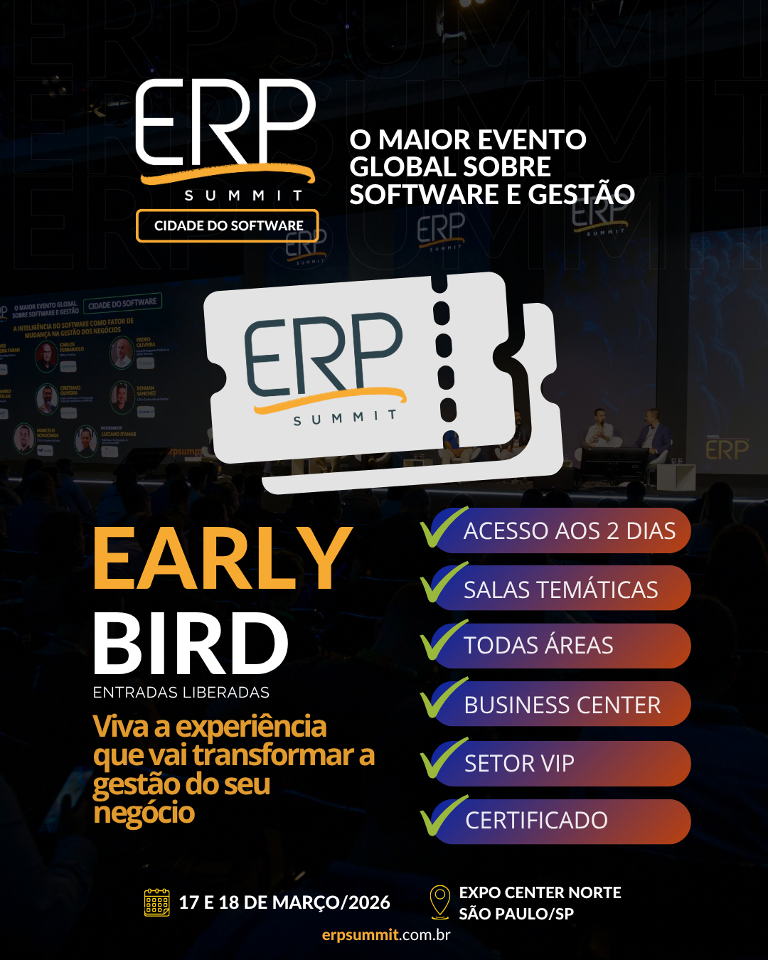 Os ingressos Early Bird do ERP Summit Brasil 2026 estão disponíveis.